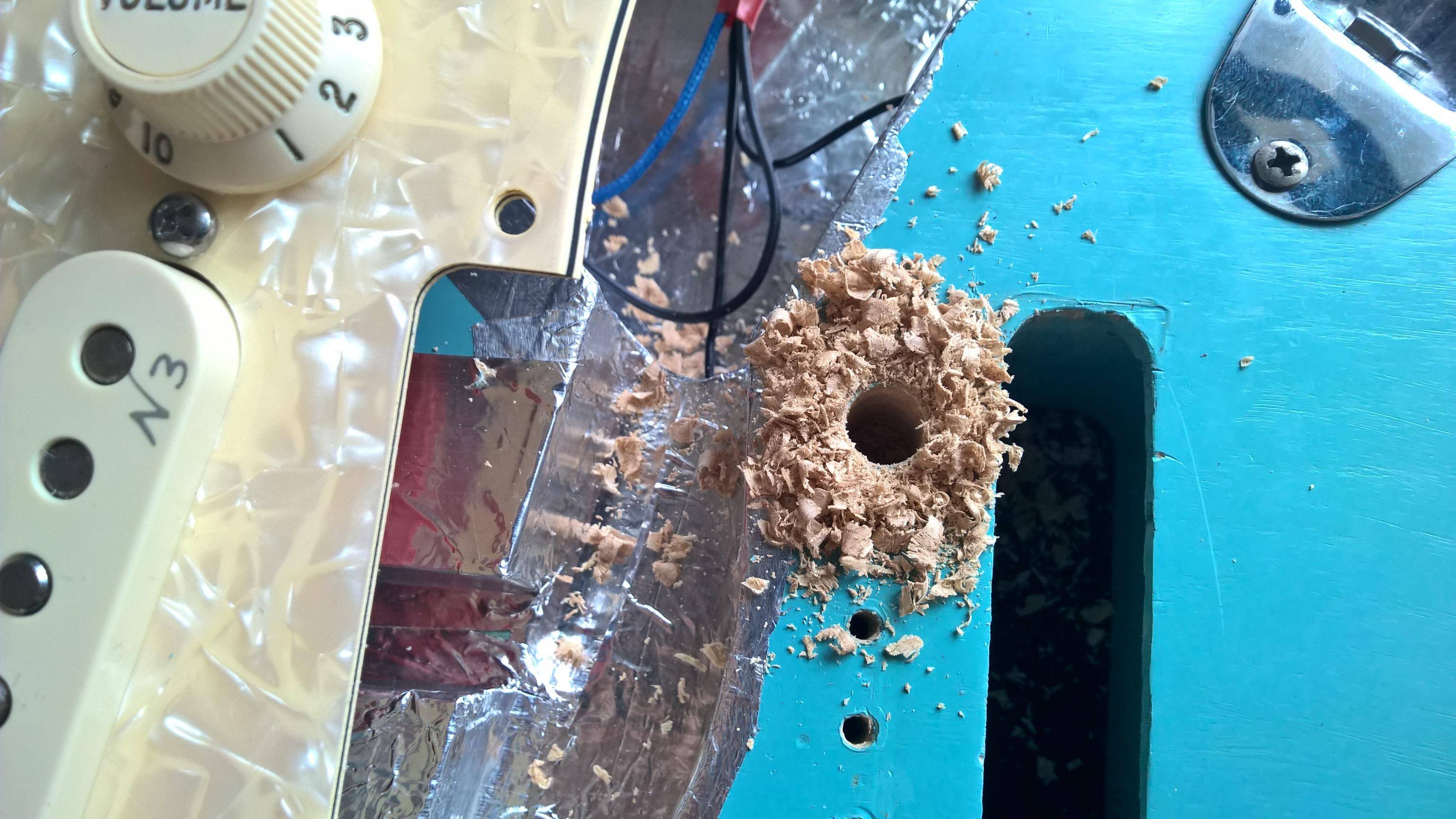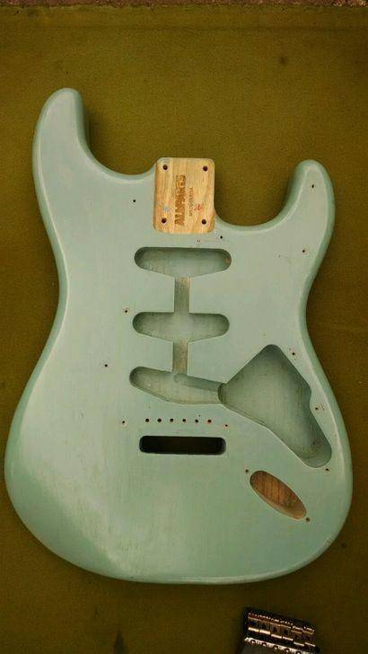然后,我又上网淘了一块儿蓝色硝基漆的AllParts的单块岑木(ASH)琴体;Wilkinson VS100琴桥;含有S1开关的Fender N3 Noiseless 拾音器套装。