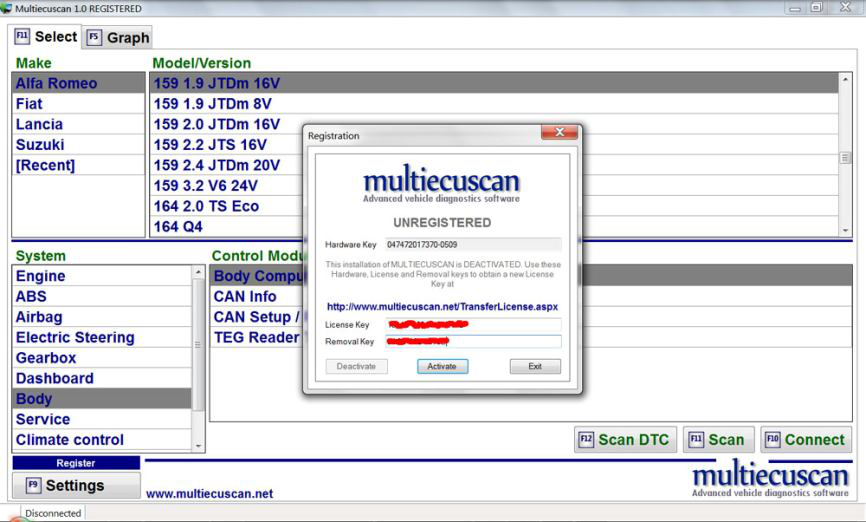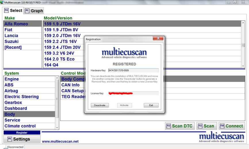 为了使用 Multiecuscan 的全部功能,您需要购买许可证。 许可证以许可证密钥的形式出现,您必须在 Multiecuscan 的注册窗口中输入该密钥。