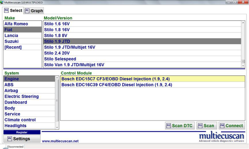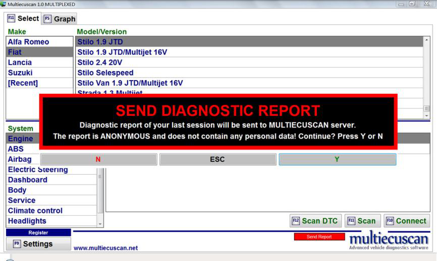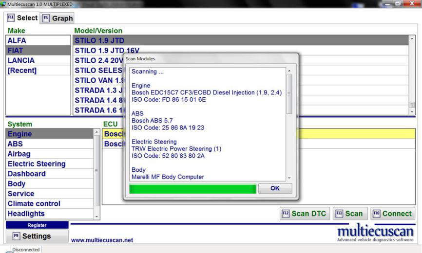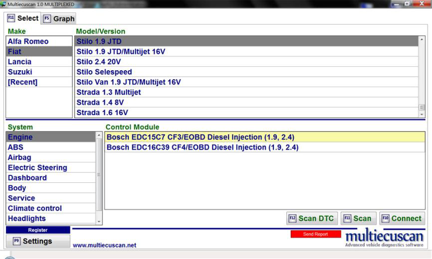Multiecuscan 是意大利车辆的诊断软件。 它允许您对支持的车辆/模块执行各种诊断任务。