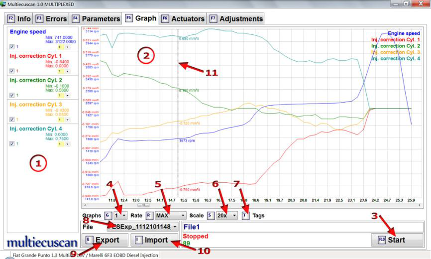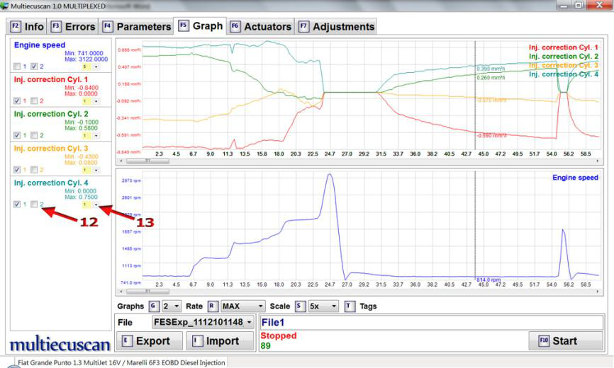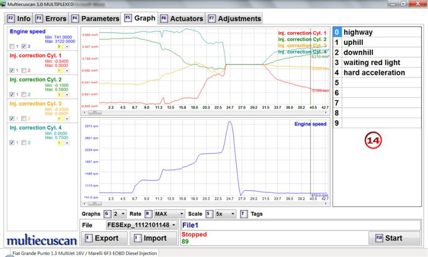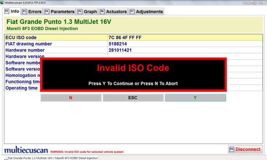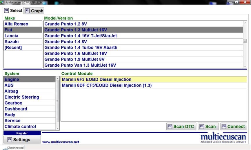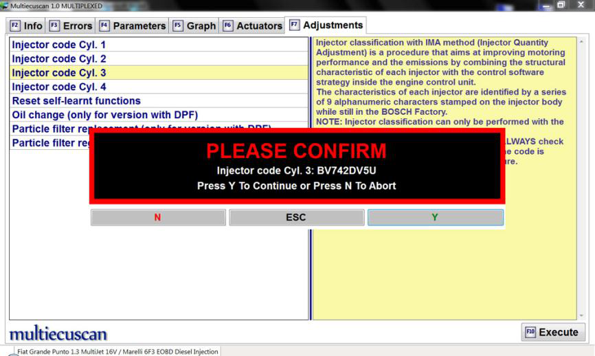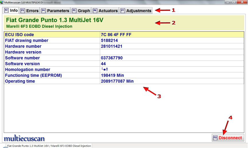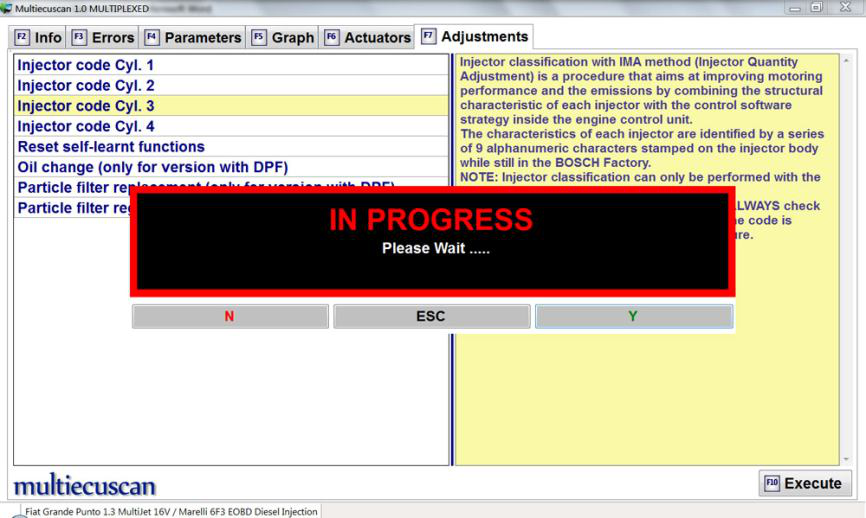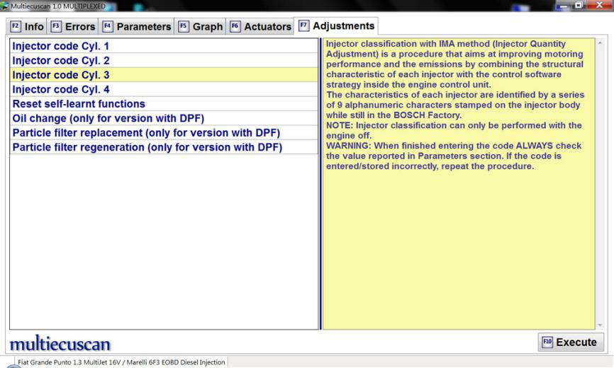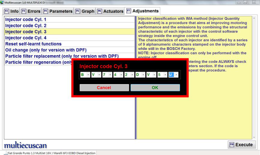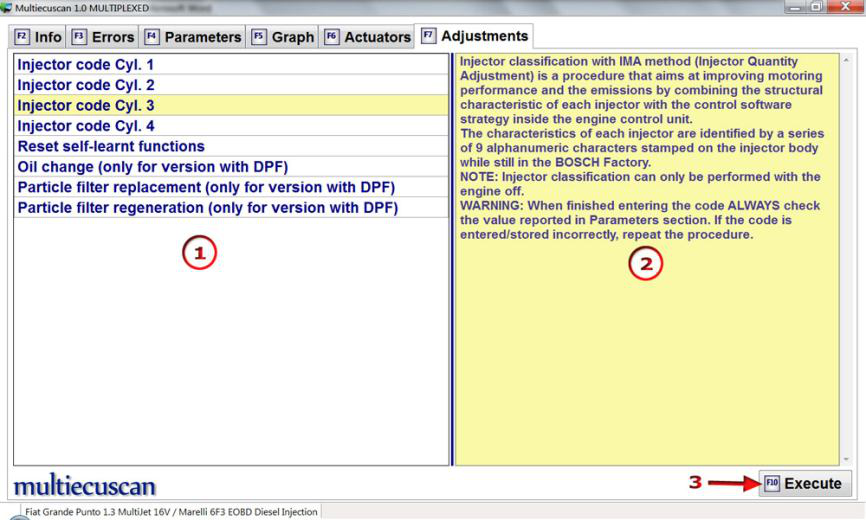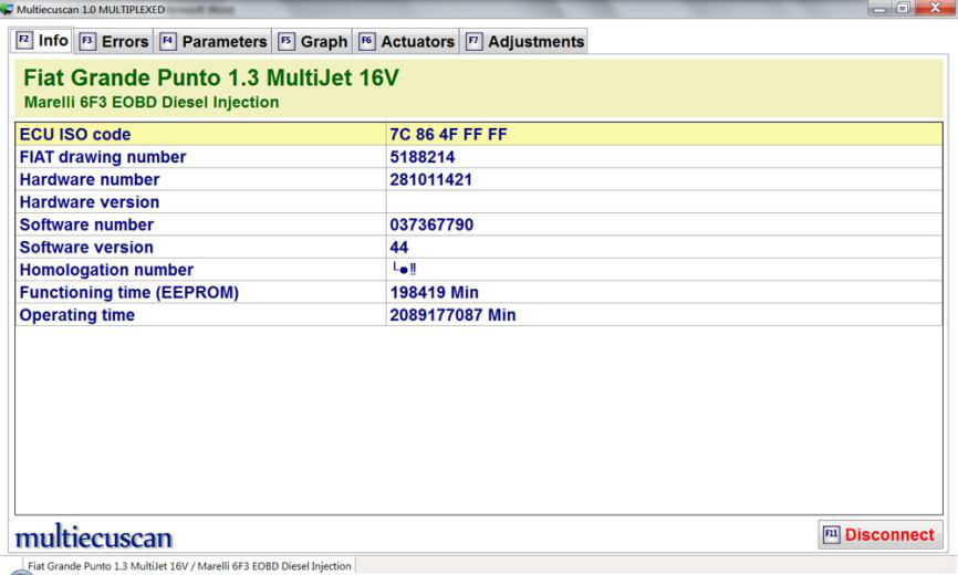 在此示例中,我们将连接到 Fiat Grande Punto 1.3 Multijet 的发动机控制模块,并将更改喷油器的 IMA 代码。