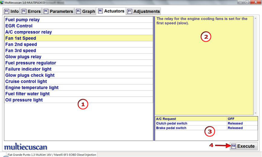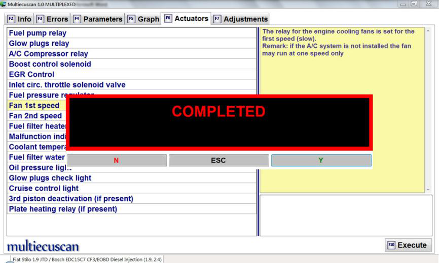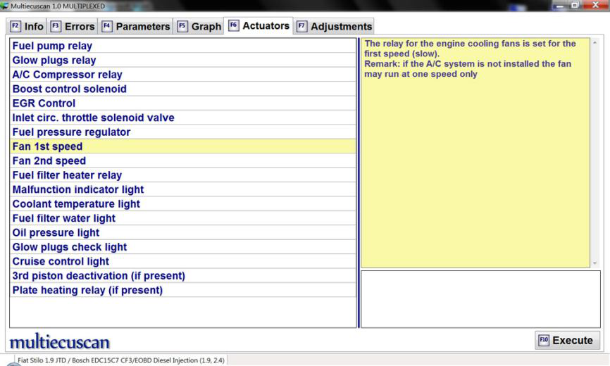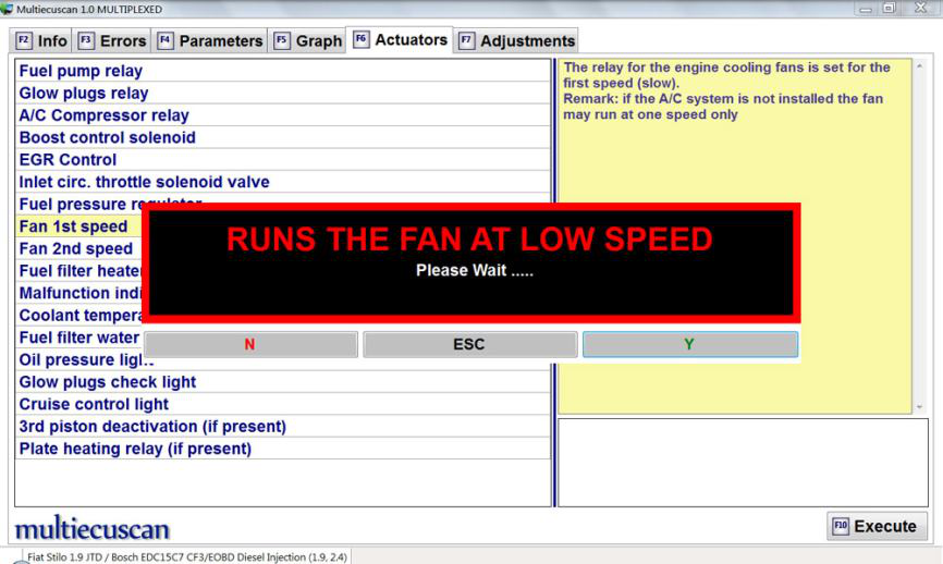 我们按 F10,Multiecuscan 将开始执行此测试。 发动机冷却风扇开始低速工作几秒钟。