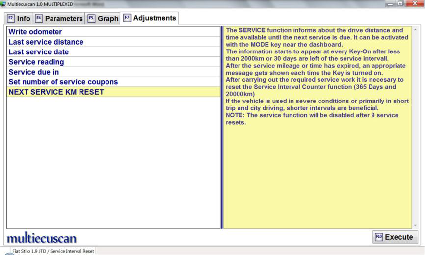 正如您在下面的屏幕上看到的,也可以运行其他程序(例如直接设置下一次服务的日期和距离),但“服务重置”程序是推荐的方法。 此外,不能保证其他程序适用于每辆车。