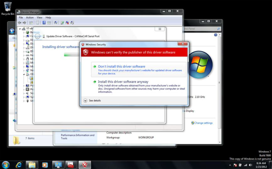 首先需要安装接口的驱动程序。 为了安装驱动程序,您需要将 CANtieCAR 接口连接到计算机上的 USB 端口。 请注意,接口不应连接到汽车,它只能连接到 USB 端口!