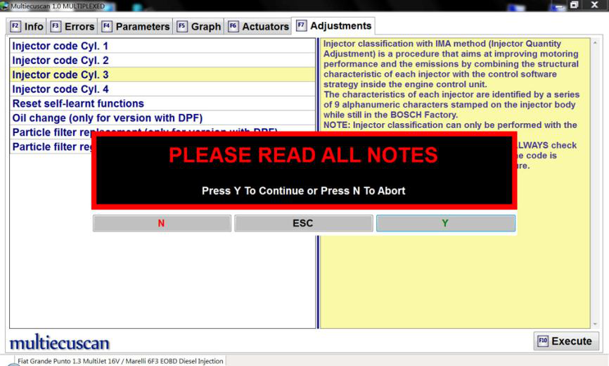 [第 6 步:] 现在我们选择“Injector code Cyl. 3”并按 F10。 然后系统会要求我们确认我们已经阅读了所有笔记。