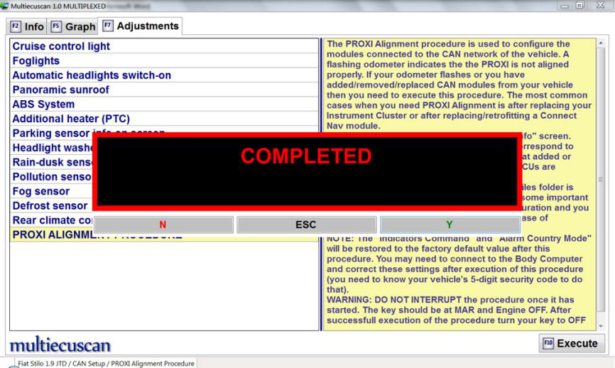 [第 8 步:] 现在我们必须执行 PROXI 对齐程序,将新设置写入汽车。
